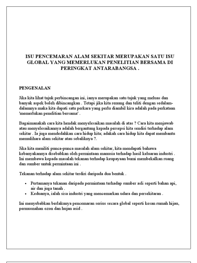 Maka kita mestilah sedar akan kepentingan memelihara alam sekitar yang masih ada pada hari ini. Up to 24 cash back KESIMPULAN. Salah satu daripada usaha dunia dalam menyelesaikan isu ini adalah dengan mewujudkan Pendidikan kewarganegaraan global GCED dengan objektif menerapkan rasa tanggungjawab di dalam diri warga global terhadap kelestarian bumi ini.