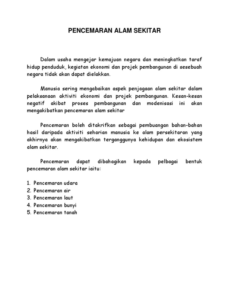 Punca Berlakunya Pencemaran Alam Sekitar Pdf